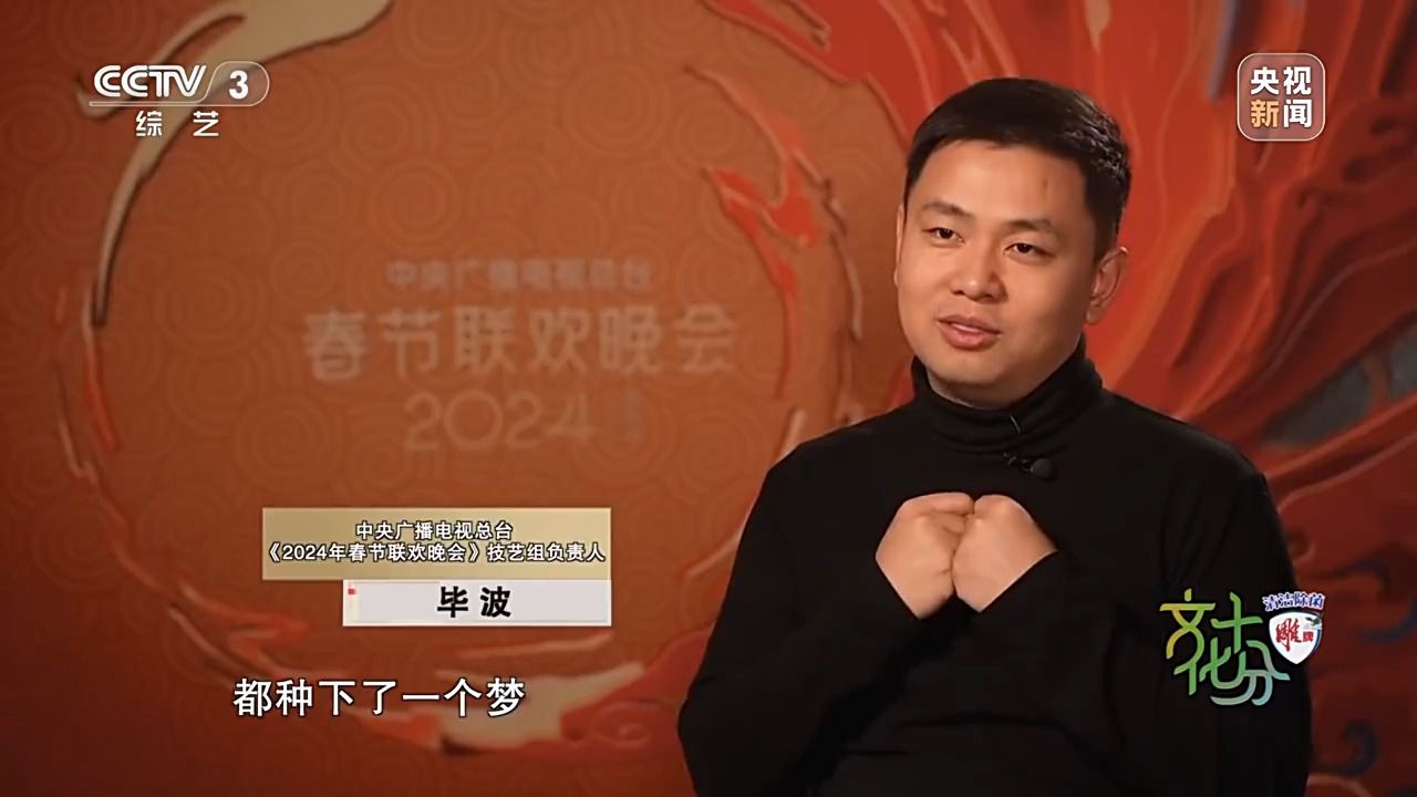 中央廣播電視總臺(tái)《2024年春節(jié)聯(lián)歡晚會(huì)》技藝組負(fù)責(zé)人 畢波:我們童年看到的很多文藝作品,其實(shí)在我們心中都種下了一個(gè)夢(mèng),過去了二三十年它開始生根發(fā)芽。研究蛟龍?zhí)柕倪@些科研人員,他們小時(shí)候也看《哪吒鬧?!罚覀兩踔裂?qǐng)了航天員去唱這首歌,他們小時(shí)候看的是《大鬧天宮》,現(xiàn)在他們?nèi)司驮谔鞂m,這是一個(gè)多么美妙的實(shí)現(xiàn)圓夢(mèng)的故事。