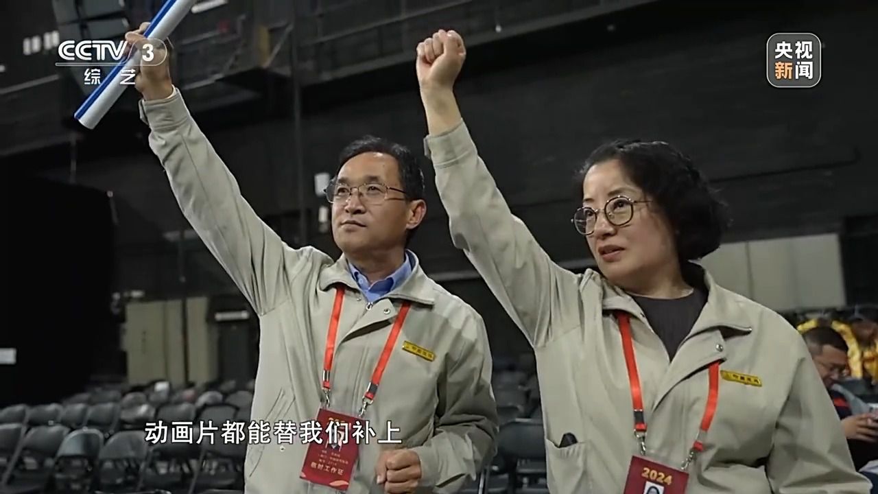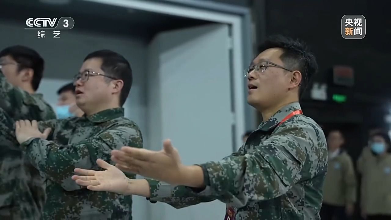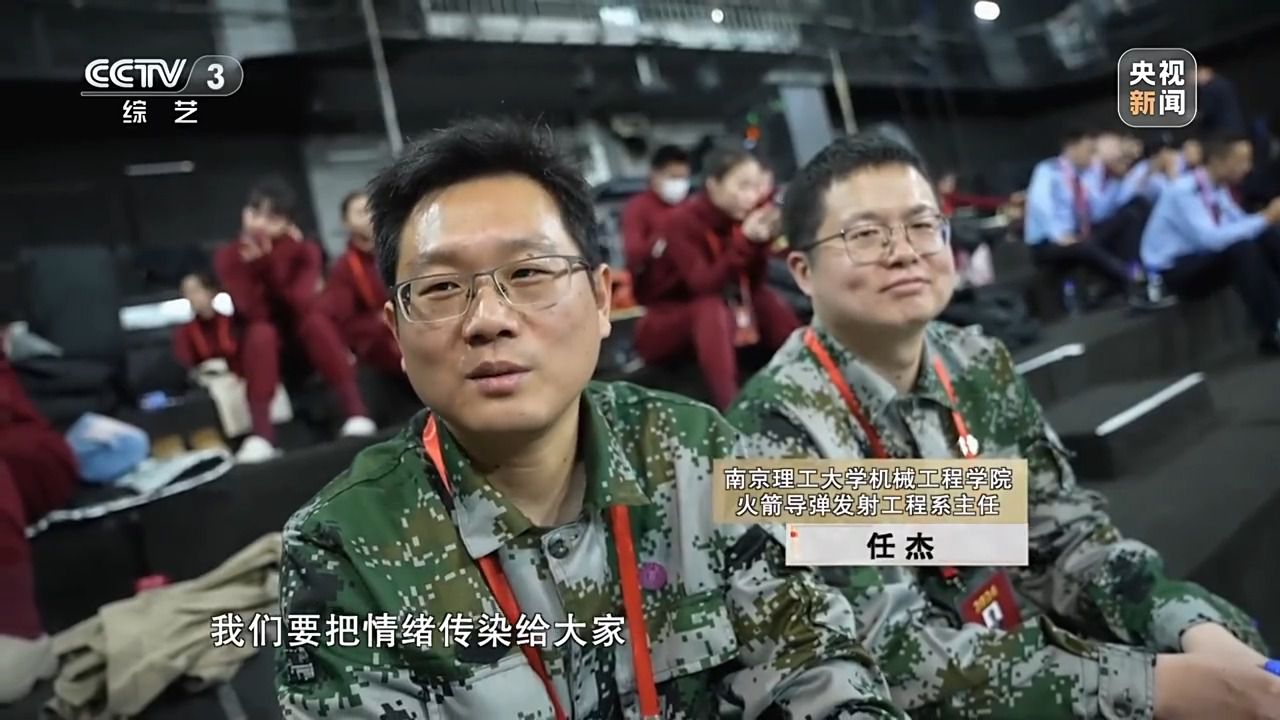 南京理工大學(xué)機(jī)械工程學(xué)院火箭導(dǎo)彈發(fā)射工程系主任 任杰:你看我們穿的這個(gè)服裝跟國(guó)防是相關(guān)的,而且又是演的貝塔這個(gè)角色,都應(yīng)該為它去增添光彩。我們?cè)谧呃壤锩娌辉诤醮蠹业哪抗?,雖然文藝表演不是我們的專長(zhǎng),但是我們拿出真誠的態(tài)度,因?yàn)榛叵胄r(shí)候看動(dòng)畫片多幸福,小時(shí)候蹦蹦跳跳唱的時(shí)候,要把情緒傳染給大家。
