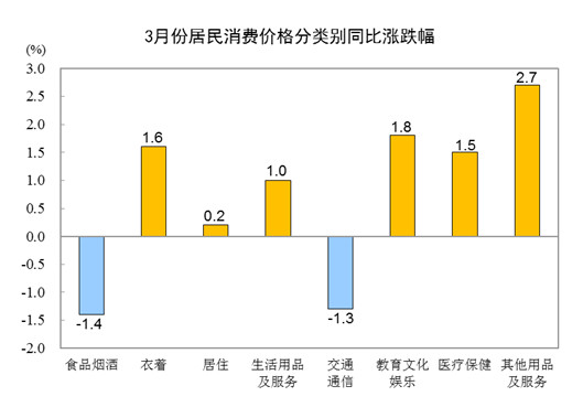 國家統(tǒng)計局:3月份居民消費價格同比上漲0.1%