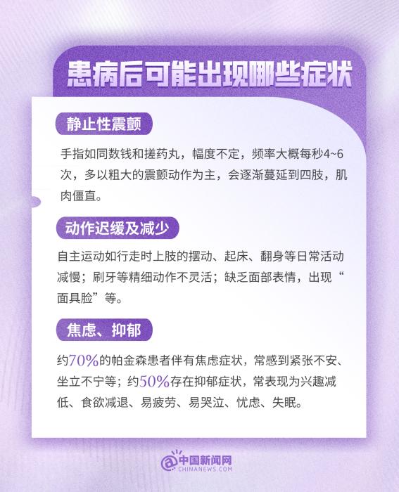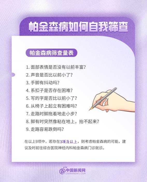 中新網(wǎng)4月11日電 帕金森病是威脅老年人健康的“沉默殺手”。帕金森病=老年癡呆?得了帕金森病壽命會縮短?只有老年人會得帕金森?。拷裉焓鞘澜缗两鹕∪?,這些有關帕金森病的小知識,一起了解!