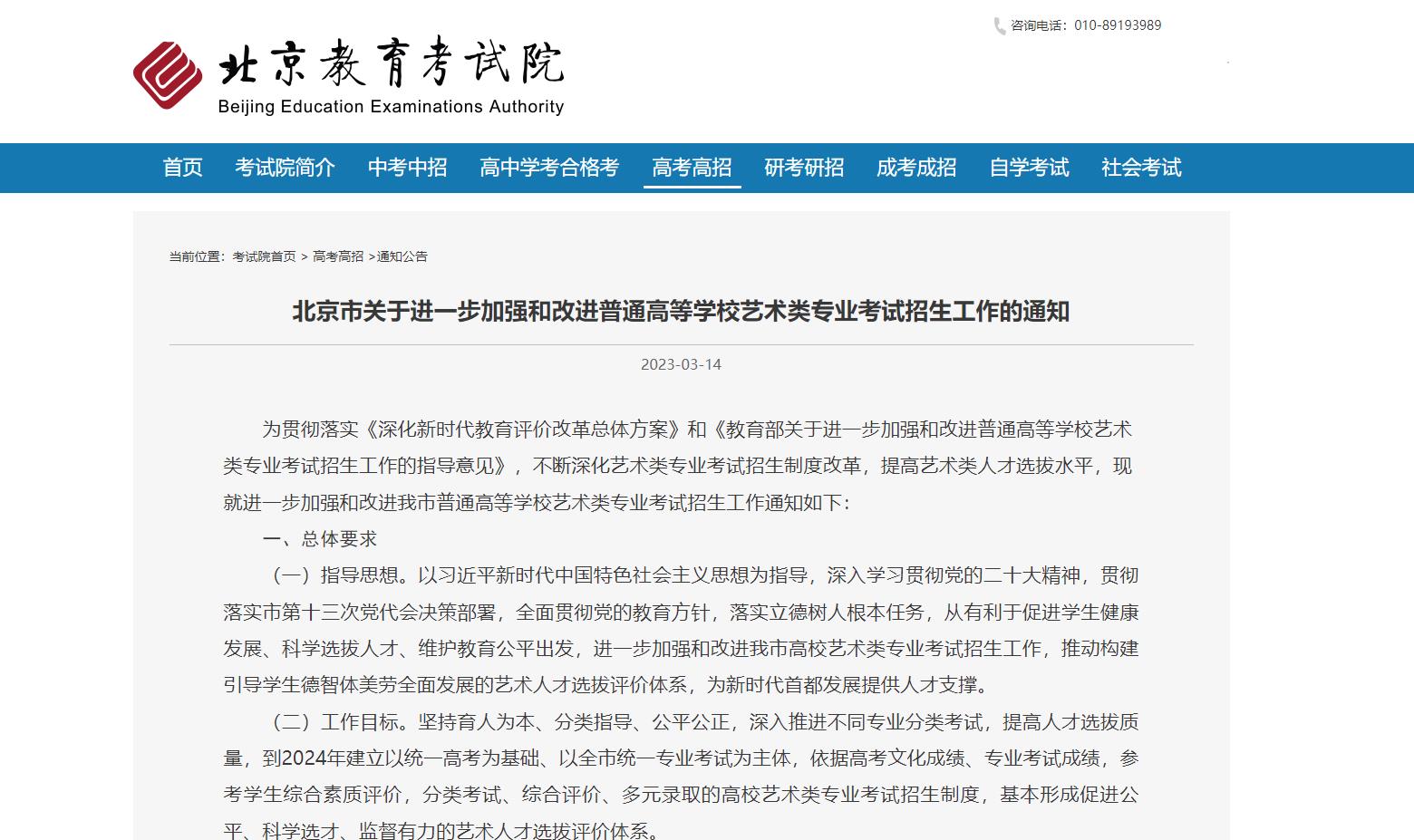 根據(jù)《北京市關(guān)于進(jìn)一步加強(qiáng)和改進(jìn)普通高等學(xué)校藝術(shù)類專業(yè)考試招生工作的通知》(以下簡稱《通知》),高校藝術(shù)類專業(yè)招生實(shí)行“文化素質(zhì)+專業(yè)能力”的考試評價(jià)方式,文化素質(zhì)使用高考文化課考試成績,專業(yè)能力使用藝術(shù)專業(yè)能力考試成績。