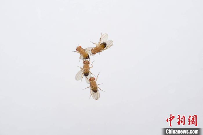 暴露在濃度略微升高的臭氧(100ppb)中15分鐘后的2只雄性果蠅開始嘗試交配?!enjamin Fabian 攝