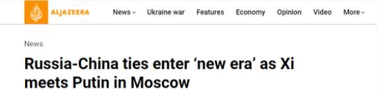 卡塔爾半島電視臺(tái)網(wǎng)站21日?qǐng)?bào)道稱,中俄元首簽署聯(lián)合聲明,將深化新時(shí)代中俄關(guān)系,俄中合作具有無限可能和廣闊前景。