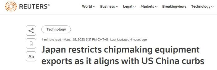 但路透社認為,日方的措施是為了配合美國實施的針對中國的芯片出口管制措施。英國《金融時報》還稱,日本此舉是在履行其與美國和荷蘭達成的、針對中國半導體的三方協(xié)議。