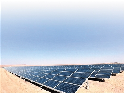 中國電建在阿爾及利亞撒哈拉沙漠中建設(shè)的光伏電站。