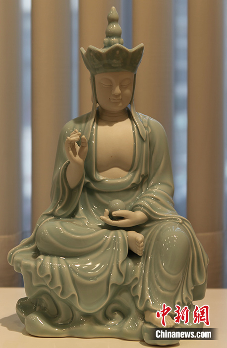 圖為展品《地藏》,造型莊嚴(yán)典雅,寧靜安詳。 中新社記者 德永健 攝