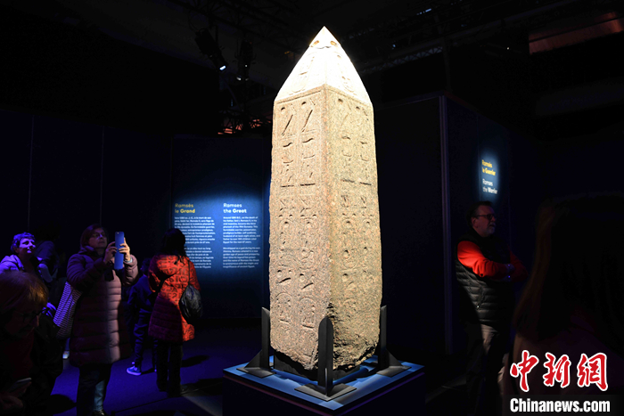 圖為觀展者在觀看展覽中展出的方尖碑。 中新社記者 李洋 攝