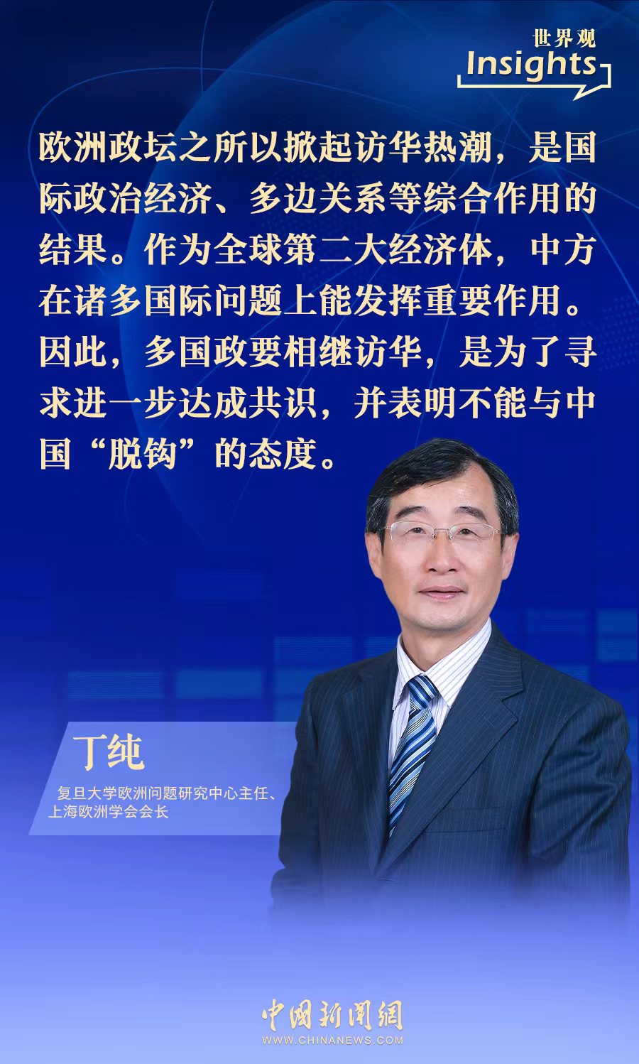 中新網(wǎng)4月7日電(甘甜)近日,復(fù)旦大學(xué)歐洲問(wèn)題研究中心主任、上海歐洲學(xué)會(huì)會(huì)長(zhǎng)丁純接受中新網(wǎng)采訪(fǎng)時(shí)表示,中國(guó)在諸多國(guó)際問(wèn)題上能發(fā)揮重要作用,歐洲多國(guó)政要相繼訪(fǎng)華,是為了尋求進(jìn)一步達(dá)成共識(shí),并表明不能與中國(guó)“脫鉤”的態(tài)度。