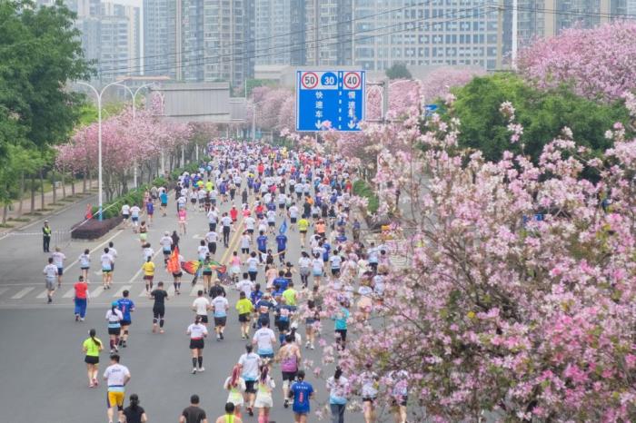 趁著柳州最美時節(jié),2023柳州馬拉松暨警察馬拉松4月9日開跑。該市獨特的洋紫荊盛開路段串聯(lián)成馬拉松賽道,參賽選手們一邊盡情奔跑,一邊領略城市獨特風景。該次比賽吸引中國各地2萬人匯聚柳州,亦促進當?shù)亟?jīng)濟發(fā)展。