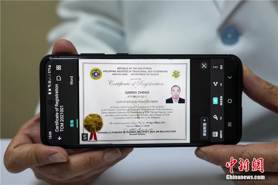 鄭啟明:2021年6月,菲律賓衛(wèi)生部授予我該國首張中醫(yī)執(zhí)業(yè)資格注冊證書,這標(biāo)志著中醫(yī)在菲律賓獲得合法執(zhí)業(yè)資格,意味著中醫(yī)在菲未來的發(fā)展迎來新的契機(jī)。