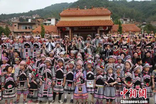 在龍勝各族自治縣龍脊鎮(zhèn)黃洛瑤寨,少數(shù)民族民眾在參加民俗巡游。潘志祥 攝