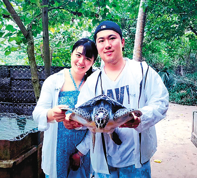 2018年,許振軒與李丹宜正在江蘇南京讀大學(xué)。一次偶然的機(jī)會,兩人到斯里蘭卡體驗(yàn)了一場特殊的“海龜保育義工之旅”。許振軒一直非常喜歡去海洋館,宿舍還有好幾個烏龜?shù)?。“看著它們從孵化到慢慢成長,感覺非常奇妙。剛好一直關(guān)注的公眾號提供了研學(xué)機(jī)會,我從眾多項(xiàng)目里選擇了‘海龜保育’。”許振軒的決定也影響了喜愛小動物的女朋友李丹宜。