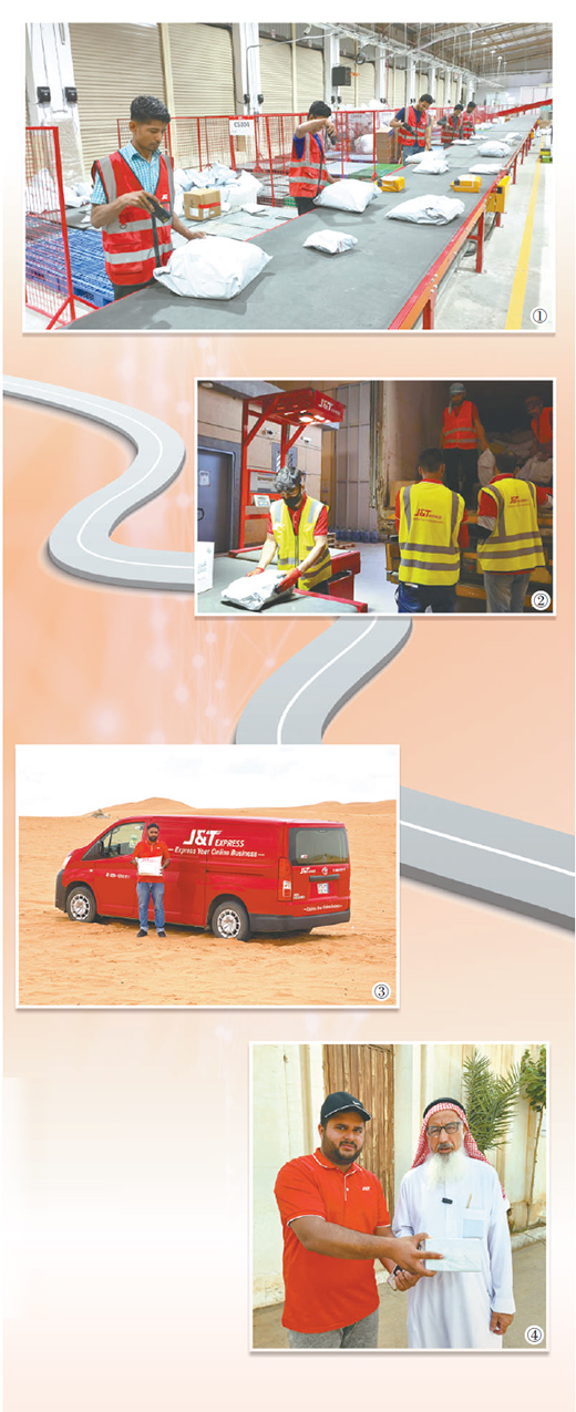圖①:位于利雅得的轉(zhuǎn)運(yùn)中心內(nèi),工作人員開(kāi)始分揀包裹。