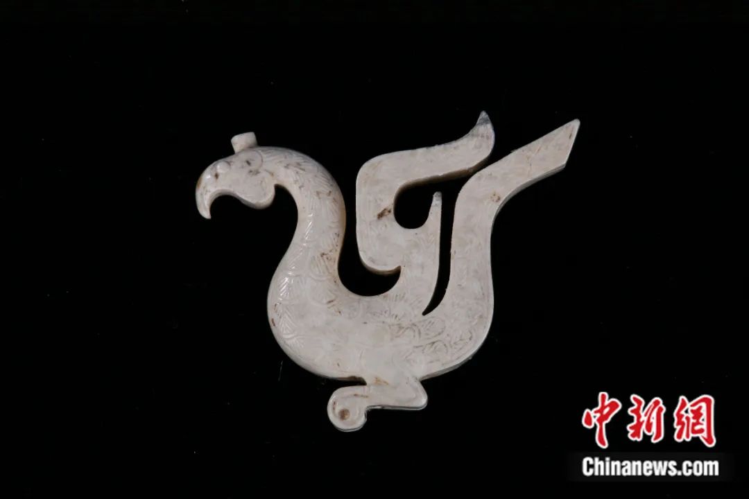 中新社記者:請(qǐng)介紹一下玉飛鳳的出土過(guò)程。玉飛鳳的特色、工藝、文化意義及其珍貴之處體現(xiàn)在哪里?