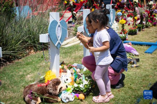 5月8日,在美國得克薩斯州達拉斯以北城鎮(zhèn)艾倫的購物中心槍擊事件現(xiàn)場附近,一名小朋友準(zhǔn)備在受害者紀(jì)念板上寫下哀思。達拉斯以北城鎮(zhèn)艾倫的一家購物中心6日發(fā)生槍擊事件,造成包括槍手在內(nèi)的9人死亡、7人受傷。新華社發(fā)(田丹攝)