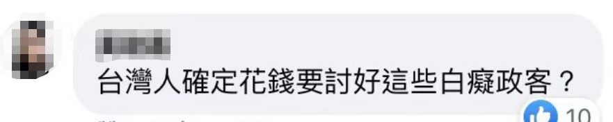 “美國也有這款garbage(垃圾),‘菜’英文滾出來抗議?!泵癖娫诹粞灾信啊R灿忻癖娮l責,“這些政客來臺,掛著臺灣友好之名,其實真來推銷他的生意利益。”