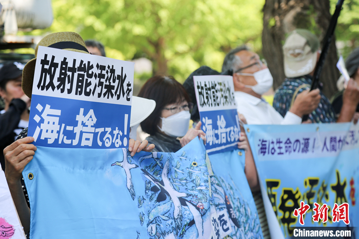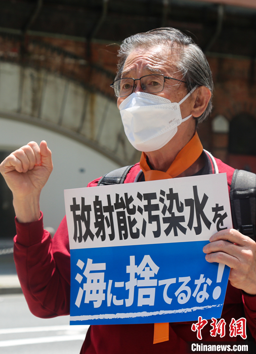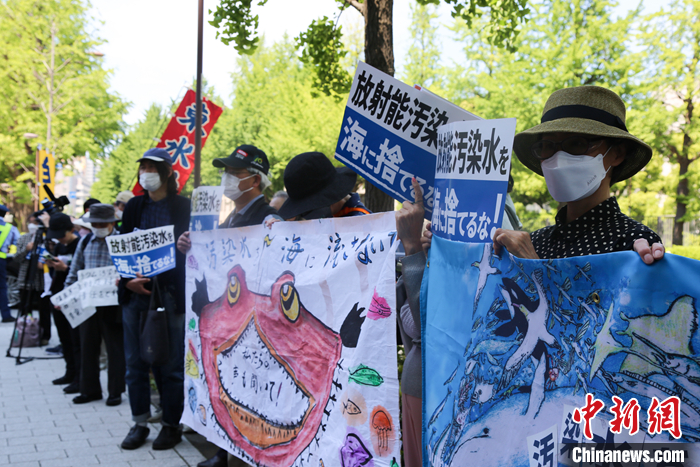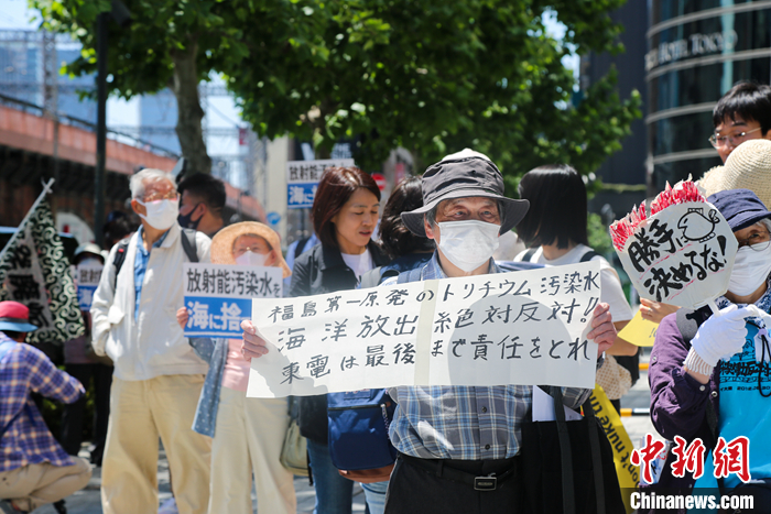 5月16日,日本民眾在東京電力公司總部前舉行集會,表達(dá)對日本政府和東京電力公司持續(xù)強(qiáng)推福島核污染水排海計劃的強(qiáng)烈反對。 中新社發(fā) 蔣文月 攝