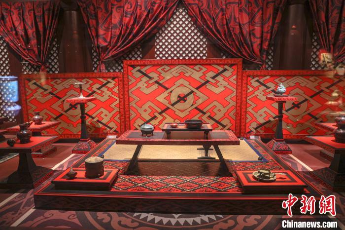 南昌漢代?;韬顕脊胚z址公園內(nèi)的“禮樂宴饗”展區(qū)?!≈行律缬浾?劉力鑫 攝