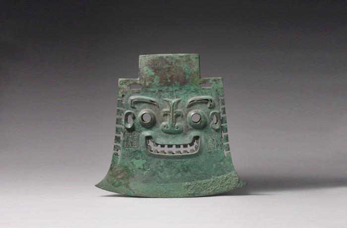 亞醜鉞器身透雕人面紋,人面五官微突出,雙目圓睜,嘴角上揚(yáng),口中露出城墻垛口似的牙齒,因其口部兩側(cè)對稱地銘有“亞醜”二字,故得名“亞醜鉞”。乍一看,好像正在微笑。