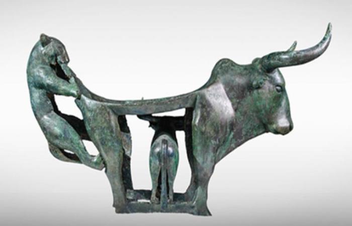 作為古滇國的一件祭器,?;~案特殊的組合造型使整個銅案重心平穩(wěn),大小和諧,動靜均衡統(tǒng)一,在力學(xué)和美學(xué)上都達(dá)到了極高水平,是云南青銅文化藝術(shù)的杰作。