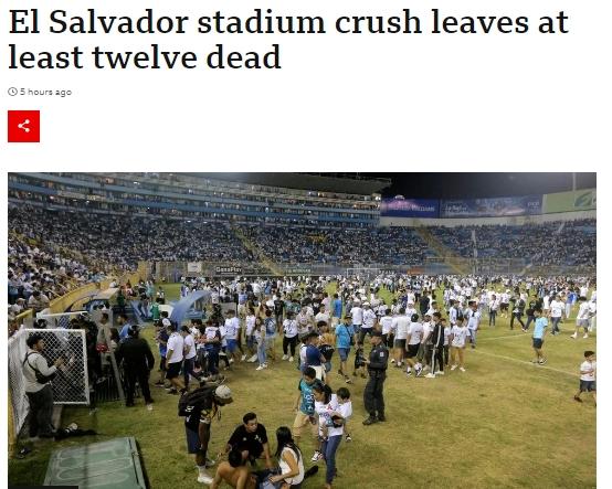 據(jù)英國廣播公司(BBC)報道,當晚,圣薩爾瓦多庫斯卡特蘭球場舉行一場全國足球賽的四分之一決賽。不少因購買假票無法入場的球迷試圖強行擠入球場,其間發(fā)生人員踩踏,造成傷亡。多名傷者傷情較重。