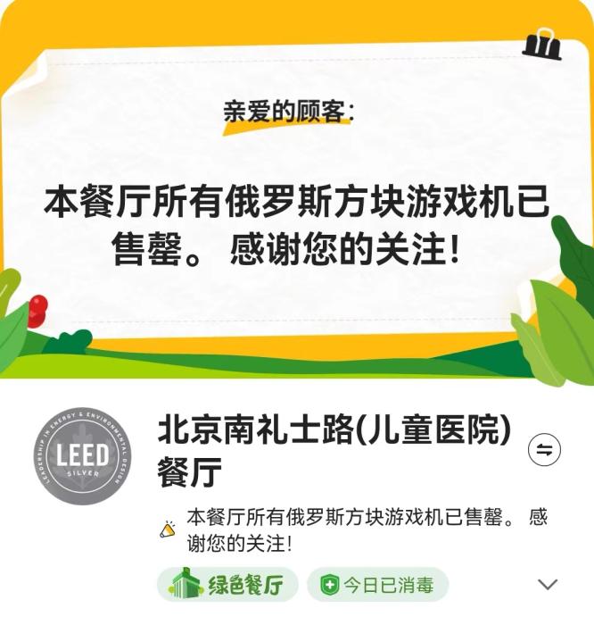 據(jù)麥當(dāng)勞介紹,活動(dòng)期內(nèi)下單購買任意產(chǎn)品,額外加30元即可獲得俄羅斯方塊游戲機(jī)一個(gè),全國(guó)限量40萬個(gè)。但當(dāng)日就有不少人表示,已經(jīng)買不到麥當(dāng)勞游戲機(jī)。記者25日登錄麥當(dāng)勞APP,北京多個(gè)門店亦顯示俄羅斯方塊游戲機(jī)已售罄。