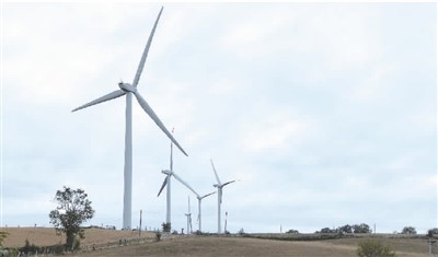 圖為中廣核歐洲能源公司位于法國阿薩克風電場的風力發(fā)電機。