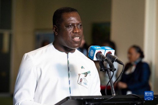 6月6日,在位于紐約的聯(lián)合國總部,塞拉利昂外交與國際合作部長弗朗西斯在塞拉利昂當選聯(lián)合國安理會非常任理事國后在記者見面會上講話。新華社發(fā)(聯(lián)合國供圖/洛伊·費利佩攝)