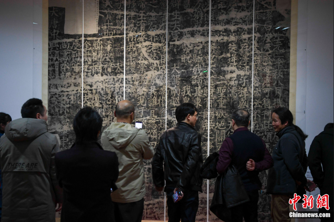 湖南長沙,觀眾參觀唐代顏真卿《大唐中興頌》石刻拓片。楊華峰 攝