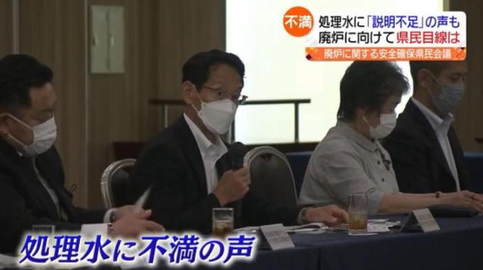 當(dāng)?shù)貢r(shí)間13日下午,日本福島縣民眾召開(kāi)會(huì)議,參加者針對(duì)日本政府計(jì)劃在今夏正式向大海排放核污水一事表示不滿。圖片來(lái)源:福島中央電視臺(tái)視頻截圖