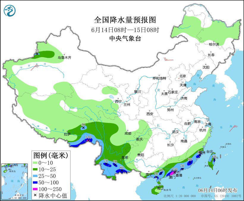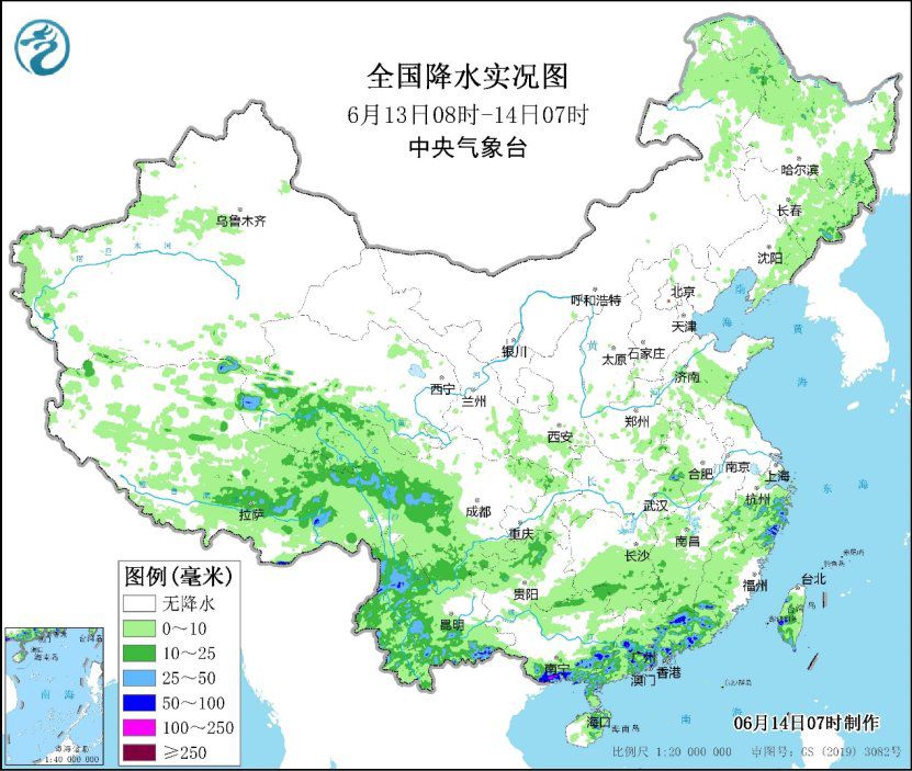 中央氣象臺今晨繼續(xù)發(fā)布暴雨藍(lán)色預(yù)警,預(yù)計(jì)今天,廣東中南部、廣西東南部、福建東南部、臺灣島中北部以及云南南部和西部、西藏東南部等地部分地區(qū)有大到暴雨,其中,廣東西南部沿海、西藏東南部等地局地有大暴雨。