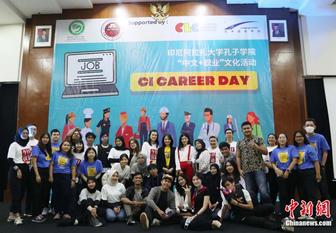 2023年3月,印尼阿拉扎大學(xué)孔子學(xué)院與中國福建師范大學(xué)印尼校友會在雅加達共同舉辦“中文+職業(yè)”文化活動。學(xué)員們通過情景劇表演,用中文表達了對教師、警察、醫(yī)生、工程師、廚師等不同職業(yè)的認識和理解。印尼阿拉扎大學(xué)孔子學(xué)院 供圖