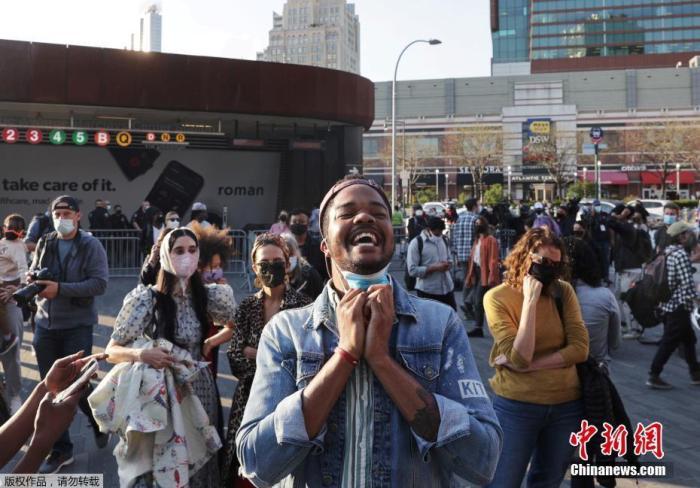 2021年6月25日,美國弗洛伊德案涉事前警察肖萬(Derek Chauvin)獲刑270個月,即22年零6個月。圖為美國民眾在街頭激動高呼。