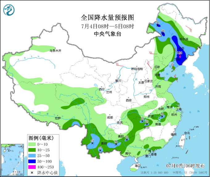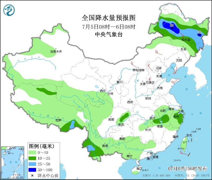中新網(wǎng)7月4日電 據(jù)中央氣象臺網(wǎng)站消息,中央氣象臺今晨繼續(xù)發(fā)布暴雨藍色預警:預計今明兩天,東北地區(qū)及內(nèi)蒙古東北部將成強降雨主陣地,其中今天白天至夜間,內(nèi)蒙古東北部、黑龍江西南部、吉林、遼寧中東部等地部分地區(qū)有大到暴雨,遼寧東北部等局地有大暴雨(100~120毫米);上述部分地區(qū)伴有短時強降水(最大小時降雨量20~50毫米,局地可超過60毫米),局地有雷暴大風等強對流天氣。明天,內(nèi)蒙古東北部、黑龍江大部、吉林北部有中到大雨,局地暴雨。受強降雨影響,內(nèi)蒙古東北部、東北部分地區(qū)等地有暴雨災害中高風險,關(guān)注局地可能發(fā)生的山洪、地質(zhì)災害和城鄉(xiāng)積澇,并防范強對流天氣的危害。