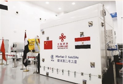 中國政府援助埃及二號衛(wèi)星初樣星交付儀式6月25日在埃及航天城衛(wèi)星總裝集成測試中心舉行。此次交付使埃及成為首個具備衛(wèi)星總裝、集成和測試能力的非洲國家。圖為交付儀式現(xiàn)場。