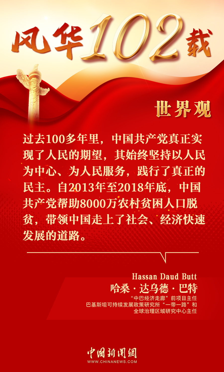 中新網(wǎng)7月8日電(陳彩霞)日前,投資領(lǐng)域?qū)<?,“中巴?jīng)濟(jì)走廊”前項(xiàng)目主任、巴基斯坦可持續(xù)發(fā)展政策研究所“一帶一路”和全球治理區(qū)域研究中心主任哈桑·達(dá)烏德·巴特(Hassan Daud Butt)在接受中新網(wǎng)專(zhuān)訪(fǎng)時(shí)表示,過(guò)去100多年里,中國(guó)共產(chǎn)黨真正實(shí)現(xiàn)了人民的期望,其始終堅(jiān)持以人民為中心、為人民服務(wù),帶領(lǐng)中國(guó)走上了社會(huì)、經(jīng)濟(jì)快速發(fā)展的道路。