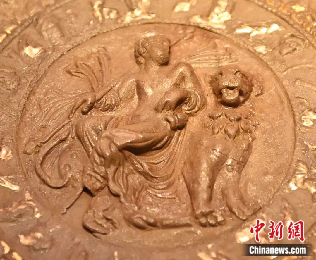 東羅馬鎏金銀盤(pán)(中央)局部。李亞龍 攝