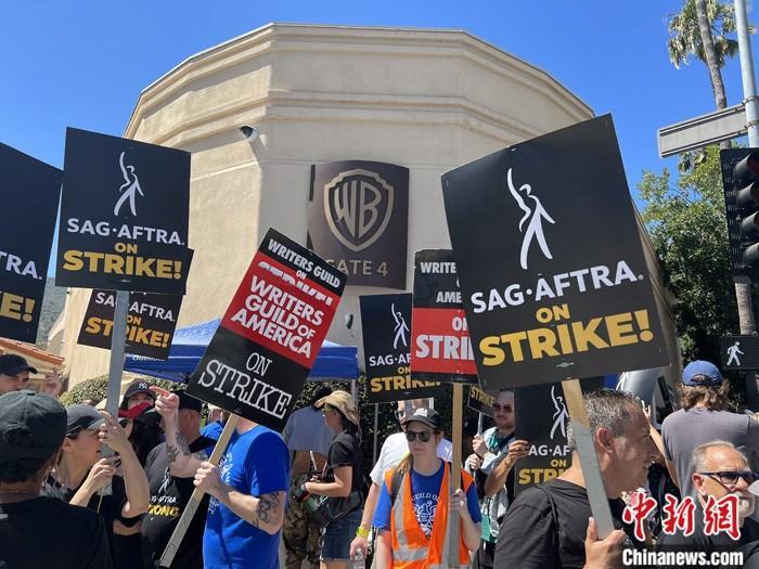 擁有約16萬(wàn)名會(huì)員的好萊塢三大工會(huì)之一美國(guó)影視演員協(xié)會(huì)(SAG-AFTRA)發(fā)起罷工,于14日起在洛杉磯和紐約的十余家制片公司外示威游行。 中新社記者 張朔 攝