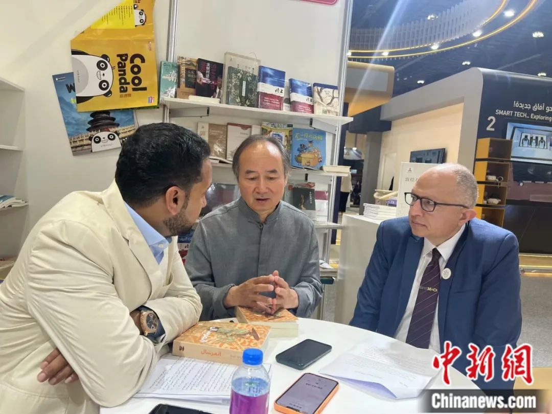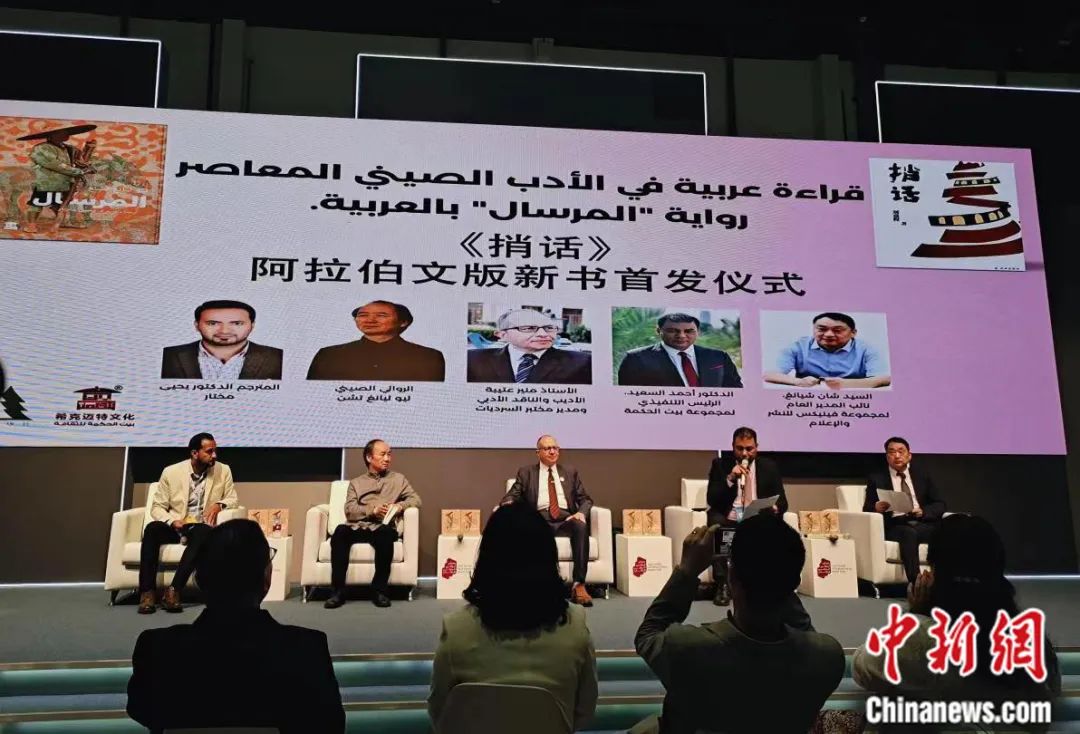 在阿布扎比國際書展上,譯林出版社與埃及??诉~特文化集團聯(lián)合舉辦《捎話》阿拉伯文版新書首發(fā)儀式。譯林出版社 供圖