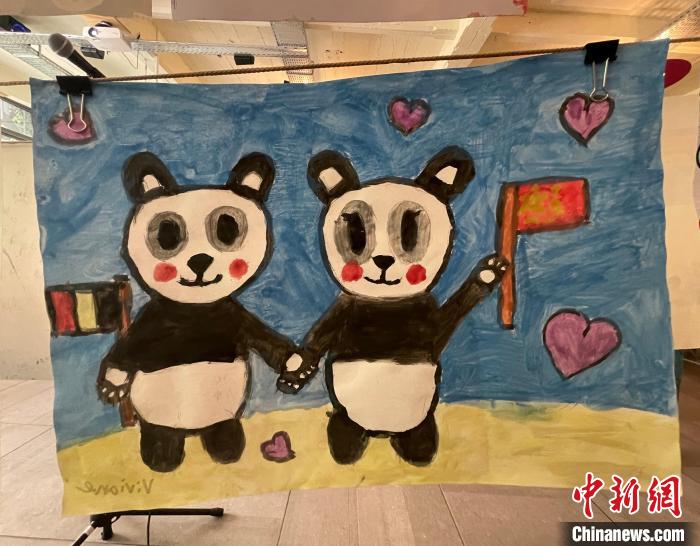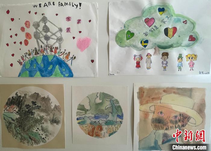 從北京天安門到比利時(shí)地標(biāo)建筑原子球塔,從中國(guó)大熊貓到梵高畫像,孩子們的筆觸雖稚嫩,卻處處傳遞中西方文化的交融交匯。