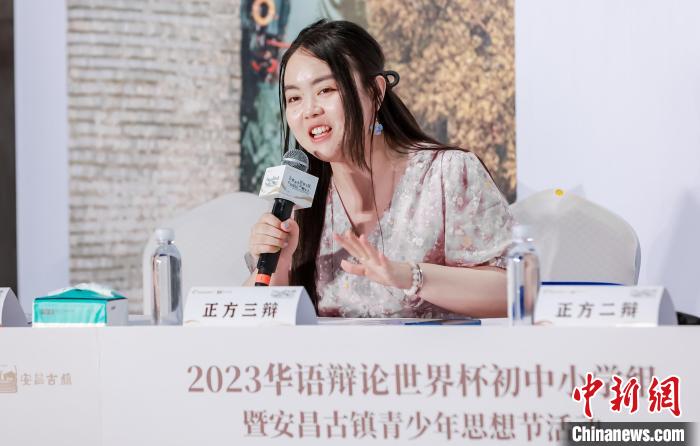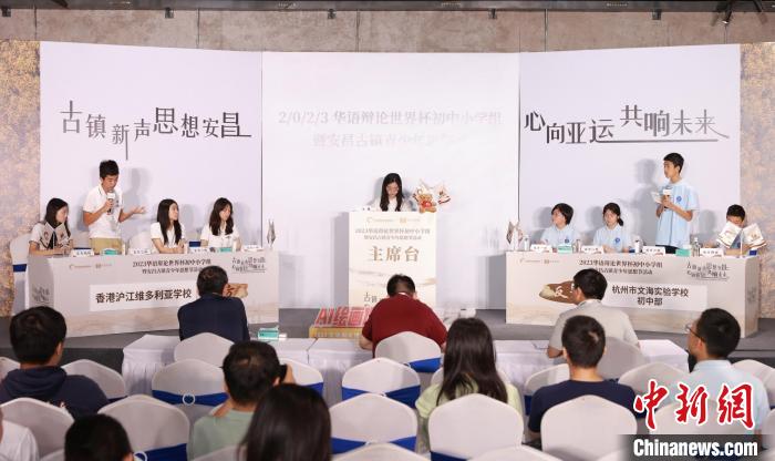 中新網(wǎng)紹興7月24日電(項菁)辯以明思,論以博學。7月22日至26日,2023華語辯論世界杯初中小學組暨安昌古鎮(zhèn)青少年思想節(jié)活動在浙江省紹興市柯橋區(qū)安昌古鎮(zhèn)舉行,辯論板塊分為團體賽與個人賽,來自世界各地64支隊伍、64名個人選手圍繞“亞運”“文化”等話題展開辯論,角逐“最強辯手”。