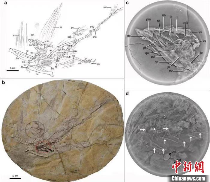 熱河鳥標(biāo)本(IVPP V14978)的線描、攝影和掃描。中國科學(xué)院古脊椎所 供圖