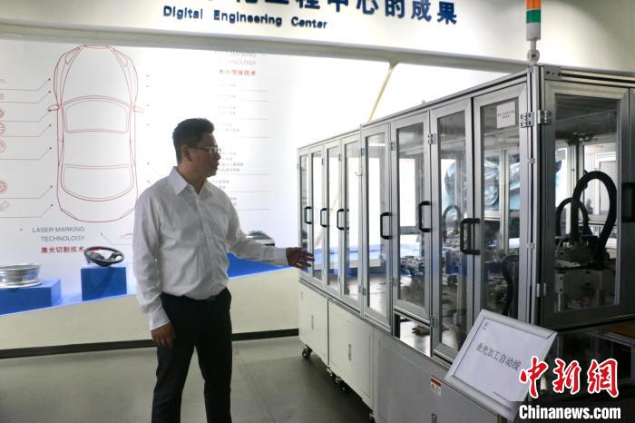 臺青孫弘明介紹柳州宏德激光科技有限公司研發(fā)的激光加工自動線。林馨 攝