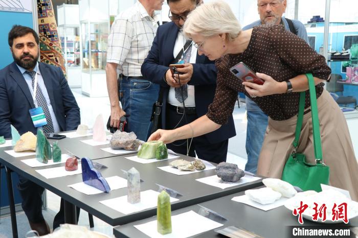 當(dāng)?shù)貢r(shí)間8月3日,哈薩克斯坦阿斯塔納,阿富汗商品展當(dāng)日啟幕。圖為阿富汗珠寶商展示產(chǎn)品?! ≈行戮W(wǎng)記者 張碩 攝