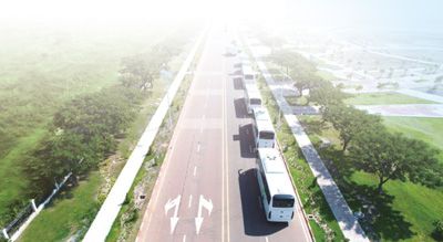 老撾萬(wàn)象賽色塔綜合開(kāi)發(fā)區(qū)內(nèi),新能源大巴車(chē)有序行駛。