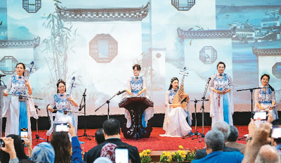 身著中國傳統(tǒng)服飾,景德鎮(zhèn)瓷樂隊(duì)的姑娘們自信地登上舞臺,用瓷甌、瓷二胡、瓷琵琶、瓷笛,帶來令人耳目一新的瓷樂合奏,為當(dāng)?shù)赜^眾獻(xiàn)上一場極具中國傳統(tǒng)意蘊(yùn)的音畫大賞。