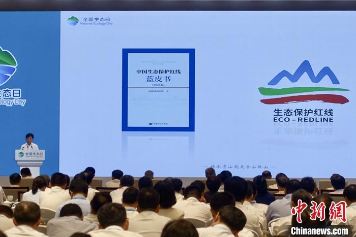 8月15日,首個(gè)全國(guó)生態(tài)日主場(chǎng)活動(dòng)在浙江湖州舉行,中國(guó)國(guó)家發(fā)改委、中國(guó)自然資源部等部門發(fā)布碳達(dá)峰碳中和重大宣示三周年重要成果、《中國(guó)生態(tài)保護(hù)紅線藍(lán)皮書(2023年)》等多方面的成果成效。圖為《中國(guó)生態(tài)保護(hù)紅線藍(lán)皮書(2023年)》發(fā)布。 中新社記者 錢晨菲 攝