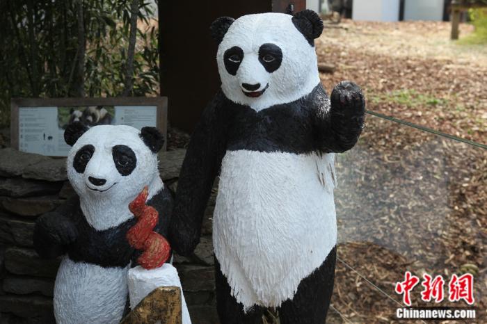 天堂動(dòng)物園新落成的熊貓雕像。中新網(wǎng)記者 德永健 攝