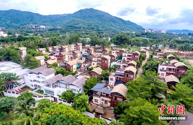 資料圖:保亭三道鎮(zhèn)黎族村莊什進村村民的房屋,屋頂造型源自黎族傳統(tǒng)民居船型屋。駱云飛 攝