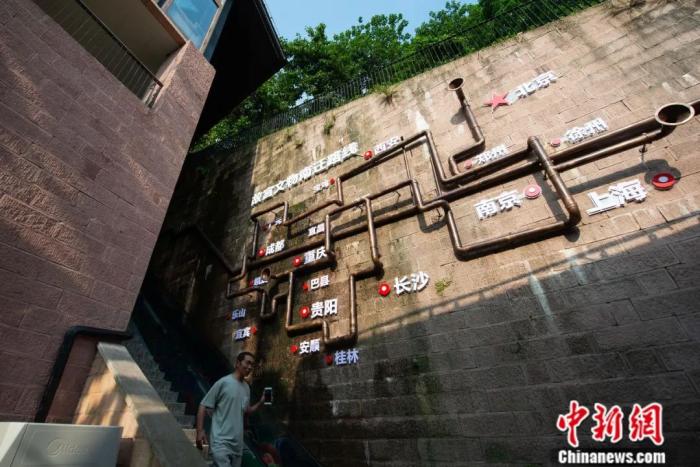 重慶故宮文物南遷紀念館內(nèi)一處外墻展示的故宮文物南遷路線。何蓬磊 攝